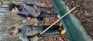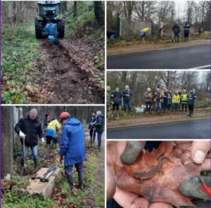 - Débroussaillage et creusement d'un sillon pour faciliter l'installation du filet de retenue des amphibiens par les équipes du Département du Nord